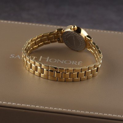 This Saint Honoré watch has a case made of stainless steel with a diameter of 26 mm and is fitted with a stainless steel band. Inside the case lies a Ronda movement and the watch features a Mineral crystal.