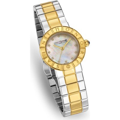 This Saint Honoré watch has a case made of stainless steel with a diameter of 28 mm and is fitted with a stainless steel band. Inside the case lies a Ronda movement and the watch features a Mineral crystal.