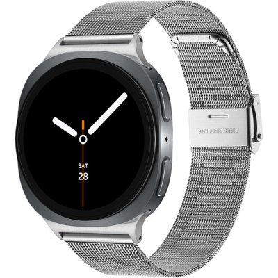 This Samsung watch has a case made of Aluminum with a diameter of 44 mm and is fitted with a stainless steel band. Inside the case lies a Samsung movement and the watch features a Sapphire crystal.