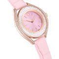 This Swarovski watch has a case made of stainless steel with a diameter of 35.5 mm and is fitted with a leather band. Inside the case lies a Ronda movement and the watch features a Mineral crystal.