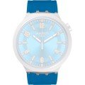 This Swatch watch strap is made of rubber and is attached to the watch by means of steel pins. The band has a width of 19.7 mm and is closed by means of a buckle. The strap has no straight mount which means that this strap is only suitable for the watches listed below.