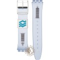 This Swatch watch strap is made of plastic/Resin and is attached to the watch by means of steel pins. The band has a width of 17 mm and is closed by means of a buckle. The strap has no straight mount which means that this strap is only suitable for the watches listed below.