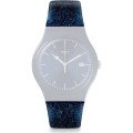 This Swatch watch strap is made of silicone and is attached to the watch by means of steel pins. The band has a width of 19.7 mm and is closed by means of a buckle. The strap has no straight mount which means that this strap is only suitable for the watches listed below.
