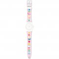 This Swatch watch strap is made of silicone and is attached to the watch by means of steel pins. The band has a width of 17 mm and is closed by means of a buckle. The strap has no straight mount which means that this strap is only suitable for the watches listed below.