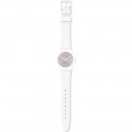 This Swatch watch strap is made of silicone and is attached to the watch by means of steel pins. The band has a width of 17 mm and is closed by means of a buckle. The strap has no straight mount which means that this strap is only suitable for the watches listed below.
