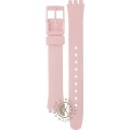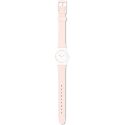 This Swatch watch strap is made of silicone and is attached to the watch by means of steel pins. The band has a width of 12 mm and is closed by means of a buckle. The strap has no straight mount which means that this strap is only suitable for the watches listed below.