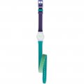 This Swatch watch strap is made of silicone and is attached to the watch by means of steel pins. The band has a width of 12 mm and is closed by means of a buckle. The strap has no straight mount which means that this strap is only suitable for the watches listed below.