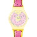 This Swatch watch strap is made of silicone and is attached to the watch by means of steel pins. The band has a width of 19.7 mm and is closed by means of a buckle. The strap has no straight mount which means that this strap is only suitable for the watches listed below.