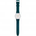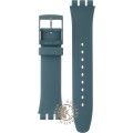 This Swatch watch strap is made of silicone and is attached to the watch by means of steel pins. The band has a width of 19.7 mm and is closed by means of a buckle. The strap has no straight mount which means that this strap is only suitable for the watches listed below.
