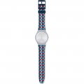 This Swatch watch strap is made of silicone and is attached to the watch by means of steel pins. The band has a width of 19.7 mm and is closed by means of a buckle. The strap has no straight mount which means that this strap is only suitable for the watches listed below.