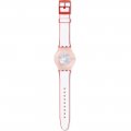 This Swatch watch strap is made of silicone and is attached to the watch by means of steel pins. The band has a width of 19.7 mm and is closed by means of a buckle. The strap has no straight mount which means that this strap is only suitable for the watches listed below.