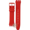 This Swatch watch strap is made of silicone and is attached to the watch by means of steel pins. The band has a width of 19.7 mm and is closed by means of a buckle. The strap has no straight mount which means that this strap is only suitable for the watches listed below.