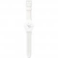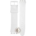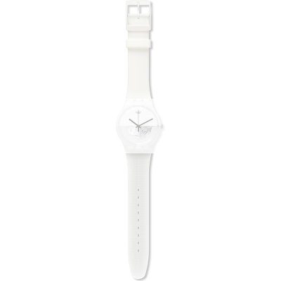 This Swatch watch strap is made of silicone and is attached to the watch by means of steel pins. The band has a width of 19.7 mm and is closed by means of a buckle. The strap has no straight mount which means that this strap is only suitable for the watches listed below.