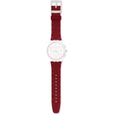 This Swatch watch strap is made of silicone and is attached to the watch by means of steel pins. The band has a width of 20.1 mm and is closed by means of a buckle. The strap has no straight mount which means that this strap is only suitable for the watches listed below.