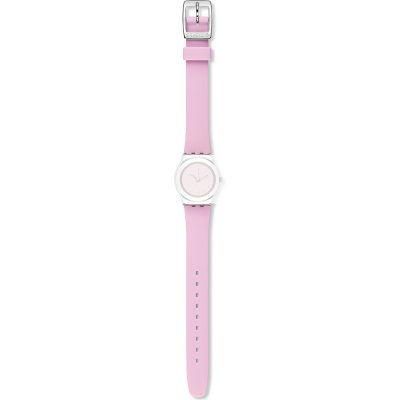 This Swatch watch strap is made of silicone and is attached to the watch by means of steel pins. The band has a width of 12 mm and is closed by means of a buckle. The strap has no straight mount which means that this strap is only suitable for the watches listed below.