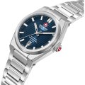 This Swiss Military Hanowa watch has a case made of stainless steel with a diameter of 41 mm and is fitted with a stainless steel band. Inside the case lies a Soprod movement and the watch features a Sapphire crystal.