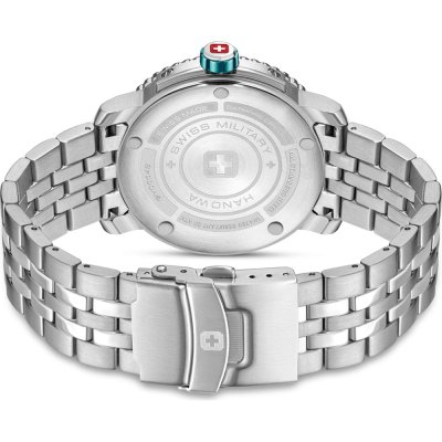 This Swiss Military Hanowa watch has a case made of stainless steel with a diameter of 44 mm and is fitted with a stainless steel band. Inside the case lies a Ronda movement and the watch features a Sapphire crystal.