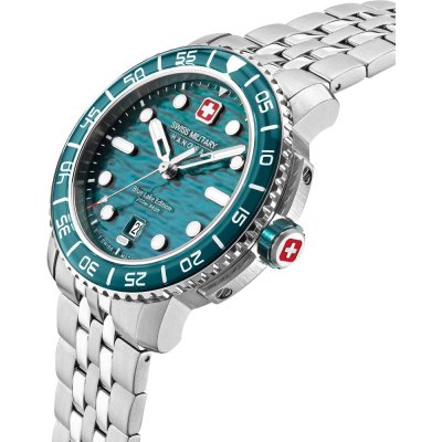 The watch is 20 ATM. This means the watch is suitable for diving. The watch comes with Swiss Military 3+2.