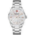 This Swiss Military Hanowa watch has a case made of stainless steel with a diameter of 43 mm and is fitted with a stainless steel band. Inside the case lies a Ronda movement and the watch features a Sapphire crystal.