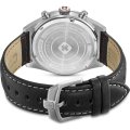 This Swiss Military Hanowa watch has a case made of stainless steel with a diameter of 43 mm and is fitted with a leather band. Inside the case lies a Ronda movement and the watch features a Sapphire crystal.