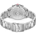 This Swiss Military Hanowa watch has a case made of stainless steel with a diameter of 43 mm and is fitted with a stainless steel band. Inside the case lies a Ronda movement and the watch features a Sapphire crystal.