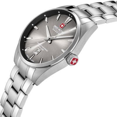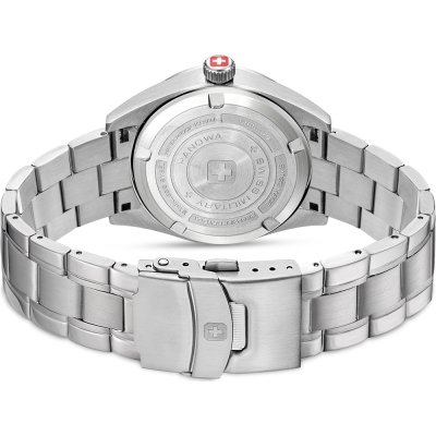 This Swiss Military Hanowa watch has a case made of stainless steel with a diameter of 42 mm and is fitted with a stainless steel band. Inside the case lies a Ronda movement and the watch features a Sapphire crystal.