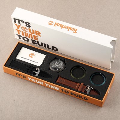 This Timberland watch has a case made of stainless steel with a diameter of 44 mm and is fitted with a leather band. Inside the case lies a Seiko Instruments Inc. movement and the watch features a Mineral crystal.