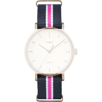 This Timex watch strap is made of textile and is attached to the watch by means of pushpins. The band has a width of 18 mm and is closed by means of a buckle. The strap has a straight mount which means that this strap is suitable for all Timex watches with a straight mount.