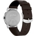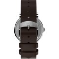 This Timex watch has a case made of metal alloy with a diameter of 38 mm and is fitted with a leather band. Inside the case lies a Timex movement and the watch features a Mineral crystal.