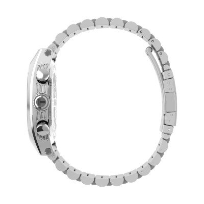 This Timex watch has a case made of stainless steel with a diameter of 42 mm and is fitted with a metal band. Inside the case lies a Timex movement and the watch features a Mineral crystal.