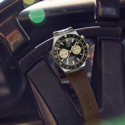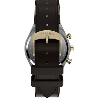This Timex watch has a case made of stainless steel with a diameter of 40 mm and is fitted with a leather band. Inside the case lies a Timex movement and the watch features a Mineral crystal.