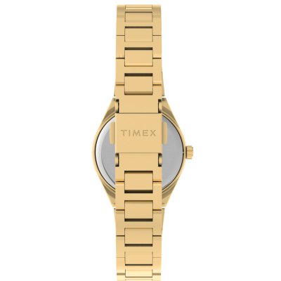 This Timex watch has a case made of stainless steel with a diameter of 24 mm and is fitted with a stainless steel band. Inside the case lies a Timex movement and the watch features a Mineral crystal.