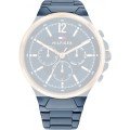 This Tommy Hilfiger watch strap is made of stainless steel and is attached to the watch by means of steel pins. The band has a width of 21 mm and is closed by means of a deployment clasp with push buttons. The strap has no straight mount which means that this strap is only suitable for the watches listed below.