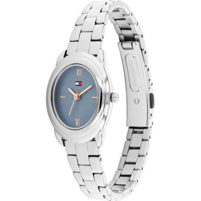 This Tommy Hilfiger watch has a case made of stainless steel with a diameter of 28 mm and is fitted with a stainless steel band. Inside the case lies a Seiko movement and the watch features a Mineral crystal.