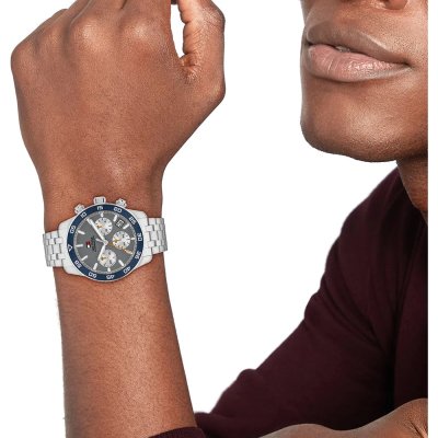 This Tommy Hilfiger watch has a case made of stainless steel with a diameter of 41 mm and is fitted with a stainless steel band. Inside the case lies a Seiko Instruments Inc. movement and the watch features a Mineral crystal.