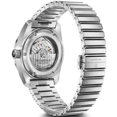 This Victorinox watch has a case made of stainless steel with a diameter of 39 mm and is fitted with a stainless steel band. Inside the case lies a La Joux-Perret movement and the watch features a Single anti-reflective sapphire crystal.