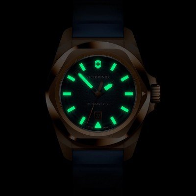 The I.N.O.X. Small Quartz watch is only small in size, not in looks or achievements. It is the 32mm ladies version of the larger INOX-family. The watch has a distinctive grainy dial finish and is available in several colors and with a tool-free changeable rubber strap or stainless steel bracelet. Like its bigger brothers and sisters the I.N.O.X small is specially well suited for outdoor activities as well as a work environment. With 10 ATM water resistance, ISO-certified anti-shock protection and ISO 764 certified antimagnetic protection, it is a versatile watch for every day.