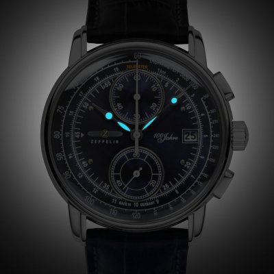 This Zeppelin watch has a case made of stainless steel with a diameter of 42 mm and is fitted with a leather band. Inside the case lies a Miyota movement and the watch features a K1 Mineral crystal.