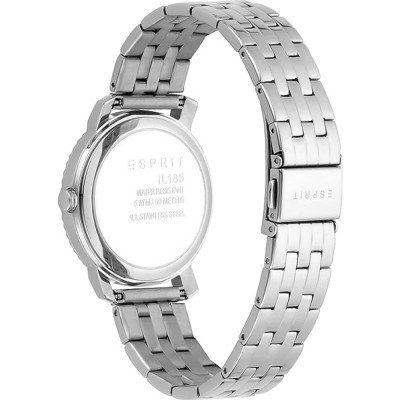 Diese Esprit Uhr hat ein Edelstahl Gehäuse mit einem Durchmesser von 36 mm und ist mit einem Armband aus Edelstahl versehen. In der Uhr arbeitet ein Seiko Instruments Inc. Uhrwerk. Das Glas der Uhr besteht aus Mineral - Glas.