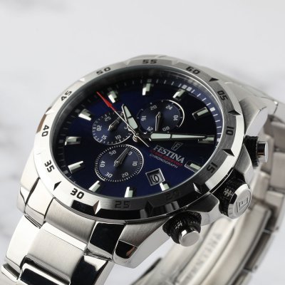 Diese Festina Uhr hat ein Edelstahl Gehäuse mit einem Durchmesser von 45 mm und ist mit einem Armband aus Edelstahl versehen. In der Uhr arbeitet ein Miyota Uhrwerk. Das Glas der Uhr besteht aus Mineral - Glas.