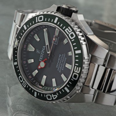Diese Festina Uhr hat ein Edelstahl Gehäuse mit einem Durchmesser von 45 mm und ist mit einem Armband aus Edelstahl versehen. In der Uhr arbeitet ein Miyota Uhrwerk. Das Glas der Uhr besteht aus Sapphir - Glas.