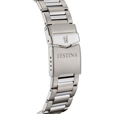 Diese Festina Uhr hat ein Titan Gehäuse mit einem Durchmesser von 43 mm und ist mit einem Armband aus Titan versehen. In der Uhr arbeitet ein Miyota Uhrwerk. Das Glas der Uhr besteht aus Mineral - Glas.
