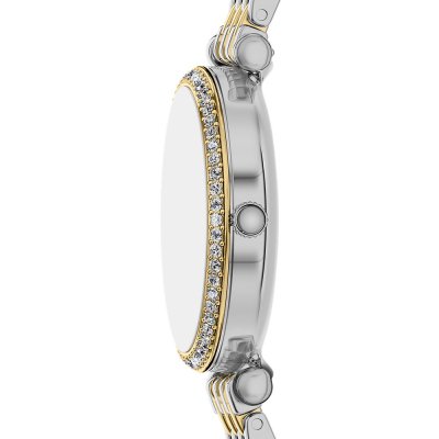 Diese Fossil Uhr hat ein Edelstahl Gehäuse mit einem Durchmesser von 28 mm und ist mit einem Armband aus Edelstahl versehen. In der Uhr arbeitet ein Seiko Instruments Inc. Uhrwerk. Das Glas der Uhr besteht aus Mineral - Glas.