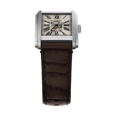 Diese Fossil Uhr hat ein Edelstahl Gehäuse mit einem Durchmesser von 30 mm und ist mit einem Armband aus Leder versehen. In der Uhr arbeitet ein Miyota Uhrwerk. Das Glas der Uhr besteht aus Mineral - Glas.
