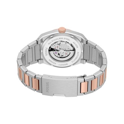 Diese Fossil Uhr hat ein Edelstahl Gehäuse mit einem Durchmesser von 42 mm und ist mit einem Armband aus Edelstahl versehen. In der Uhr arbeitet ein Miyota Uhrwerk. Das Glas der Uhr besteht aus Mineral - Glas.