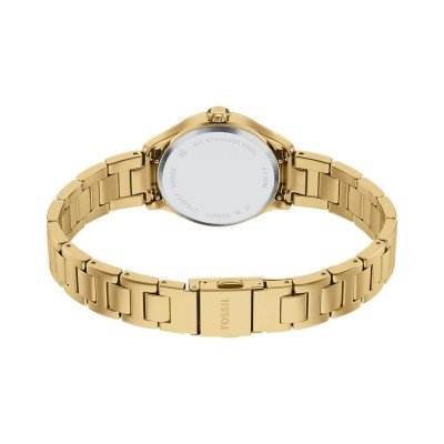Diese Fossil Uhr hat ein Edelstahl Gehäuse mit einem Durchmesser von 28 mm und ist mit einem Armband aus Edelstahl versehen. In der Uhr arbeitet ein Seiko Instruments Inc. Uhrwerk. Das Glas der Uhr besteht aus Mineral - Glas.