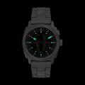 Diese Fossil Uhr hat ein Edelstahl Gehäuse mit einem Durchmesser von 41 mm und ist mit einem Armband aus Edelstahl versehen. In der Uhr arbeitet ein Bao Jie Uhrwerk. Das Glas der Uhr besteht aus Mineral - Glas.
