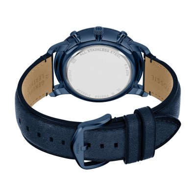 Diese Fossil Uhr hat ein Edelstahl Gehäuse mit einem Durchmesser von 44 mm und ist mit einem Armband aus Leder versehen. In der Uhr arbeitet ein Miyota Uhrwerk. Das Glas der Uhr besteht aus Mineral - Glas.