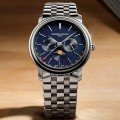 Diese Frederique Constant Uhr hat ein Edelstahl Gehäuse mit einem Durchmesser von 40 mm und ist mit einem Armband aus Edelstahl versehen. In der Uhr arbeitet ein Ronda Uhrwerk. Das Glas der Uhr besteht aus Sapphir - Glas.
