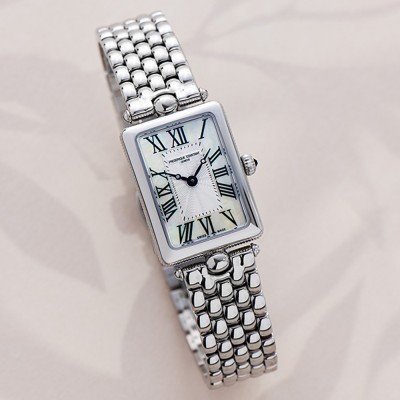 Diese Frederique Constant Uhr hat ein Edelstahl Gehäuse mit einem Durchmesser von 20.7 mm und ist mit einem Armband aus Edelstahl versehen. In der Uhr arbeitet ein Frederique Constant Uhrwerk. Das Glas der Uhr besteht aus Sapphir - Glas.